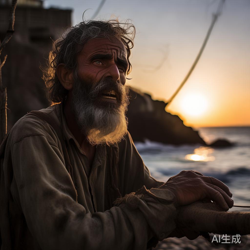 很久以前,在一个小而美丽的渔村里,生活着名叫阿卜杜拉的打鱼人。这个渔村坐落在碧蓝的大海旁,阳光透过层层白云洒在波光粼粼的海面上,潮声阵阵低语,如同海洋对土地的私语。在这里,人们有着独特的习俗,比如每年举行盛大的捕鱼节,以庆祝丰收与连结乡民之间的情谊。而阿卜杜拉则是这片土地上的一位普通渔夫,正努力养活他的大家庭——九个儿子,还有刚出生的第十个孩子。他颤抖着希望能通过每天早晨出海,捕获些许鱼类来填饱孩子们的肚子。