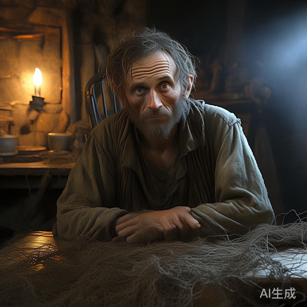他怀揣着希冀,踏上去往海边的路,撒下网,一边默默祈祷:“主啊,求您眷顾我的孩子,给他富裕的生活,别让他受苦受难。”然而,无论他怎样拼尽全力,只捞起来垃圾、海藻与沙石,没有任何一条鱼。这几次下来,他的心头愈加沉重,自言自语道:“莫非安拉造化这个孩子就是为了让他受苦吗?”但是他又迅速否决自己。“安拉是仁慈的嘛,总会为我们的家庭准备食物!”